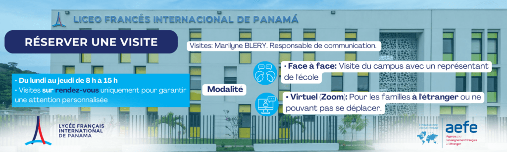 Le Lycée français international de Panama ouvre ses portes à toutes les familles qui souhaitent en savoir plus sur nos installations et notre méthodologie pédagogique. Nous pensons qu’une visite guidée est le meilleur moyen de découvrir l’environnement universitaire, d’interagir avec les enseignants et de comprendre notre proposition pédagogique unique. Au cours de la visite, les parents et les élèves pourront visiter les salles de classe, les laboratoires, les zones sportives et les espaces de loisirs, tout en recevant des informations détaillées sur notre programme et les valeurs institutionnelles.