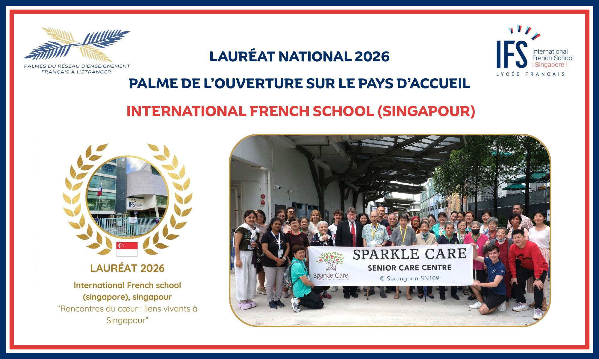 « Nous sommes profondément honorés de recevoir la Palme “Ouverture sur le pays d’accueil”, mais la véritable récompense a été de voir nos élèves grandir grâce à cette initiative », a déclaré le proviseur de l’IFS, M. David Binan. « Accueillir nos amis aînés sur notre campus pour le concert de Noël de l’année dernière a été un moment fort pour toute notre communauté. À travers des jeux partagés et des conversations sincères, nos élèves ont appris que le respect et l’empathie transcendent l’âge et les origines. Voir ce projet modeste, mais profondément significatif, reconnu sur la scène mondiale valide notre mission de former des citoyens du monde compatissants. »